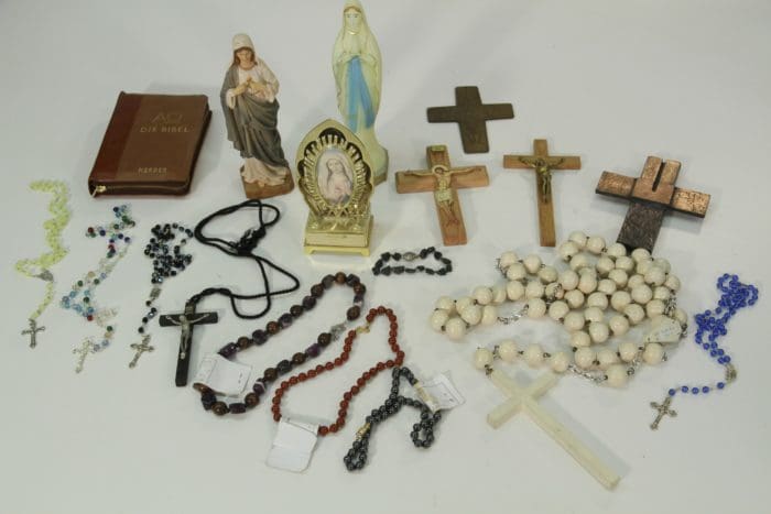 Kreuze, Rosenkranz, Heiligenfiguren div.
