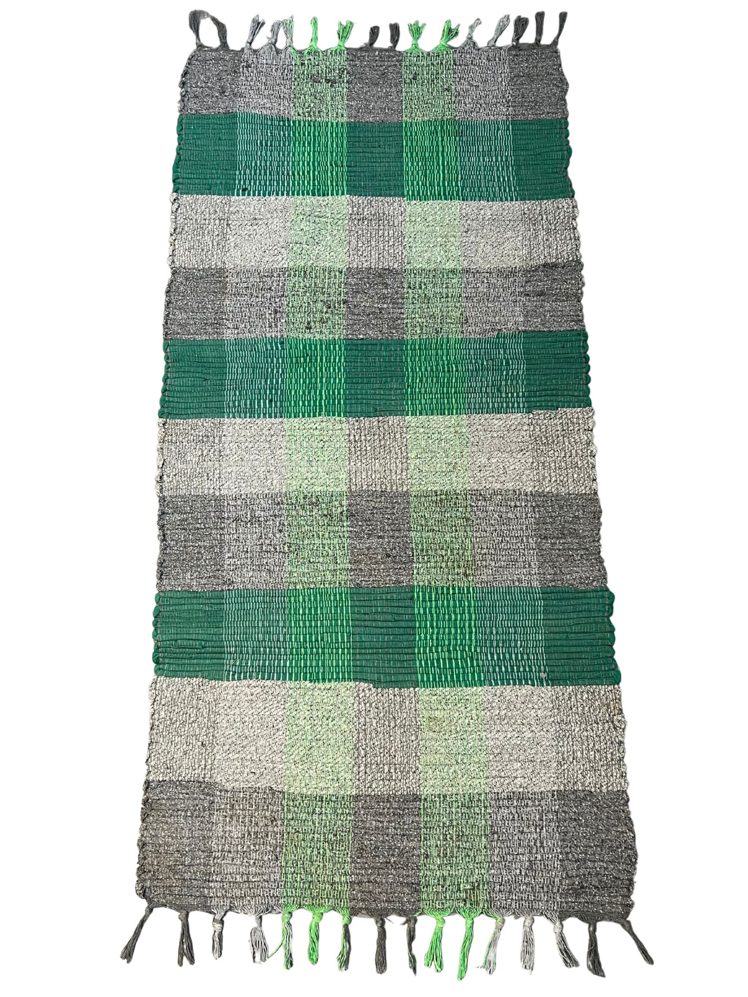 Fleckerlteppich grün kariert, 135 cm x 65