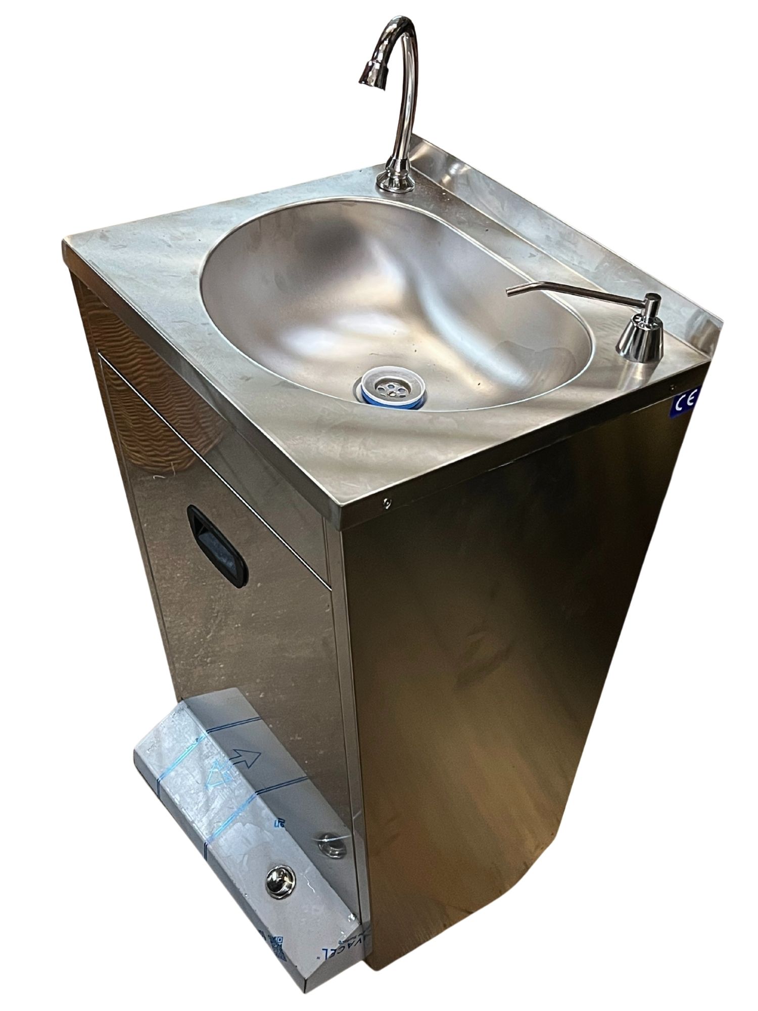 Auch als Zellenwaschbecken nutzbar (hier am Foto noch mit Schutzfolie am Fuß)